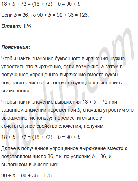 Найдите значение выражения 18 + b + 72 при b = 36.