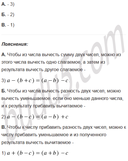 А. Чтобы из числа вычесть сумму двух чисел, можно из этого числа вычесть одно слагаемое, а затем из результата вычесть другое слагаемое.