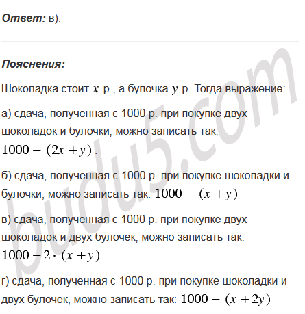 г) сдача, полученная с 1000 р. при покупке шоколадки и двух булочек.