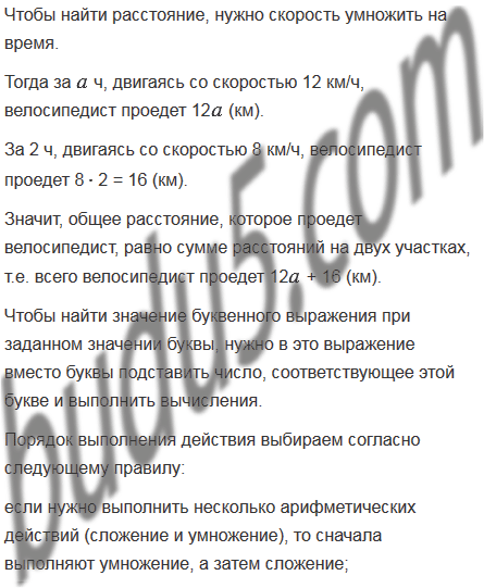ч со скоростью 12 км/ч и 2 ч со скоростью 8 км/ч. Сколько километров проехал велосипедист за это время? Составьте выражение для решения задачи и найдите его значение при