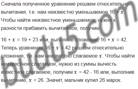 б) У мальчика было 16 почтовых марок. Он купил ещё несколько марок, после этого подарил младшему брату 23 марки, и у него осталось 19 марок. Сколько марок купил мальчик?