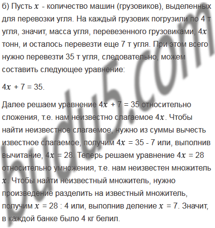 б) Для перевозки 35 т угля выделили несколько грузовиков. На каждый грузовик погрузили по 4 т угля, после чего осталось перевезти еще 7 т угля. Сколько машин было выделено?