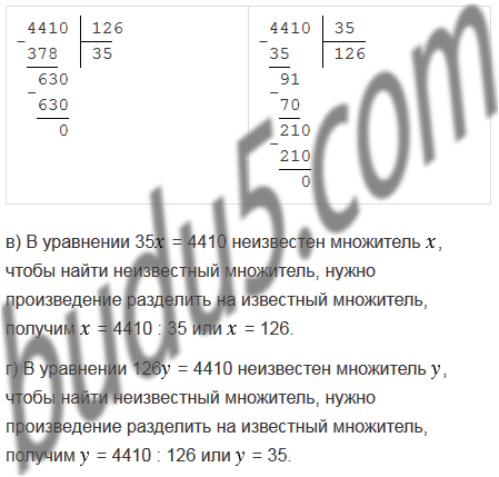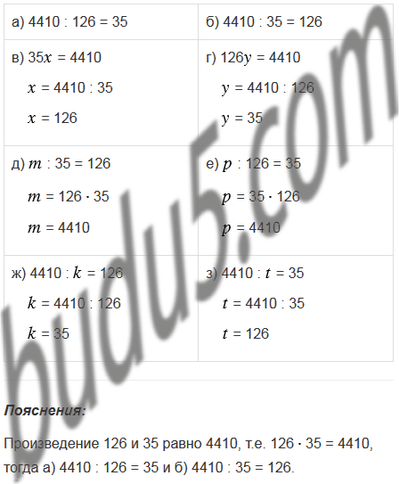б) 4410 : 35;                 д) : 35 = 126;             з) 4410 : = 35.