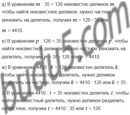 в) 35 = 4410;             е) : 126 = 35;