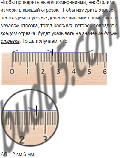 Сравните на глаз отрезки АВ и ВС. Проверьте свой вывод измерением.