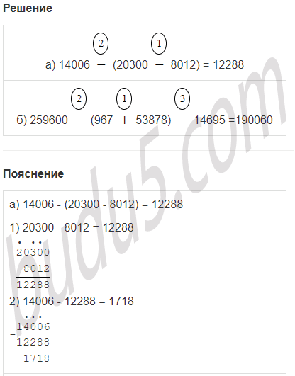 | а) 14006 - (20300 - 8012) | б) 259600 - (967 + 53878) - 14695 |