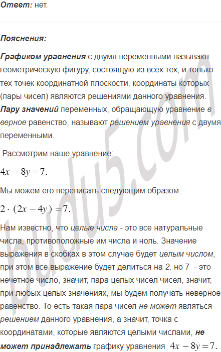 Принадлежит ли графику уравнения хотя бы одна точка, у которой обе координаты - целые числа?