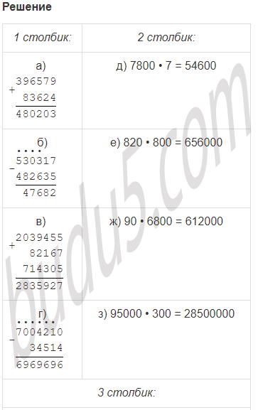| в) 2039455 + 82167 + 714305 | ж) 90 • 6800 |