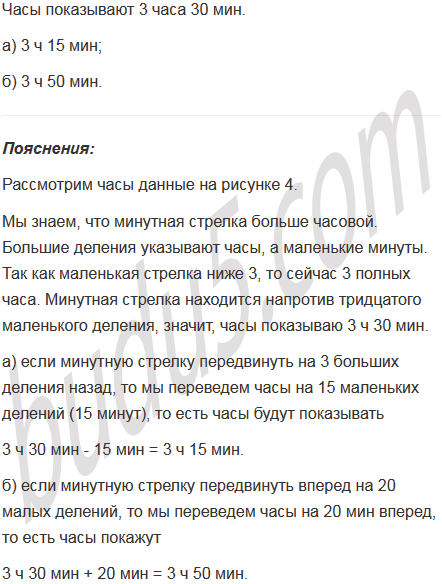 Какое время показывают часы на рисунке 4? Какое время будут показывать часы, если минутную стрелку передвинуть: