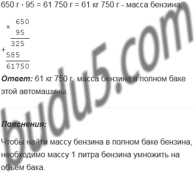 Масса 1 л бензина 650 г. В бензобак автомобиля входит 95 л бензина. Какова масса бензина в полном баке этой автомашины?