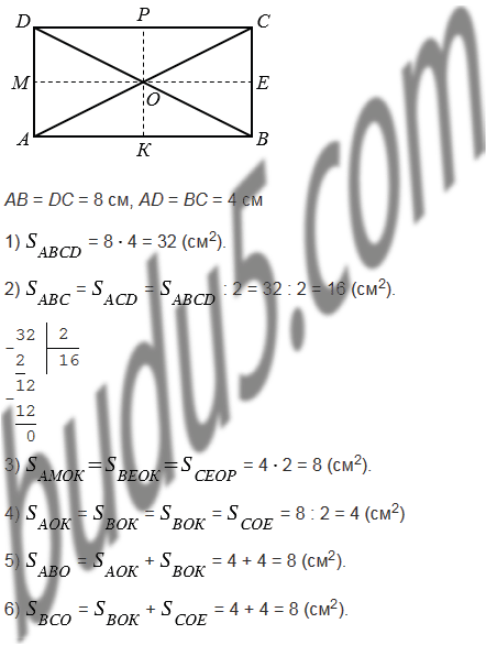 По рисунку 23 найдите площади треугольников АВС, АСD, АВО и ВСО.