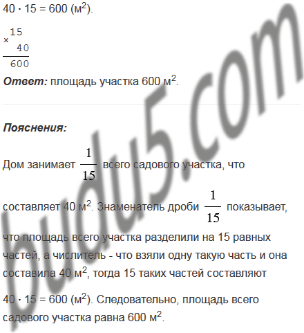 Дом занимает всего садового участка. Найдите площадь участка, если площадь земли под домом 40 м2.