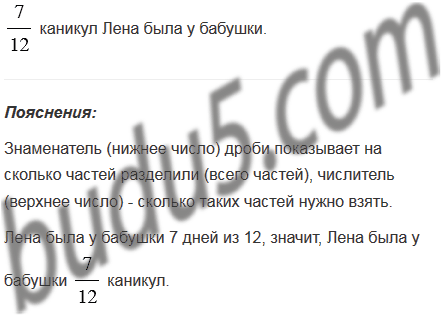 Из 12 дней зимних каникул Лена была 7 дней у бабушки. Какую часть каникул Лена была у бабушки?