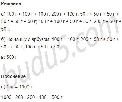 б) На одной чашке весов лежит арбуз массой 4 кг 800 г, а на другой- дыня массой 5 кг. Какими гирями можно их уравновесить?