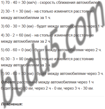 Легковой автомобиль движется со скоростью 70 км/ч, а грузовой - со скоростью 40 км/ч. Сейчас легковой автомобиль находится сзади грузовика на расстоянии 60 км. оба автомобиля движутся в одном направлении. Какое расстояние будет между ними через 1 ч, через 2 ч, через 3 ч?