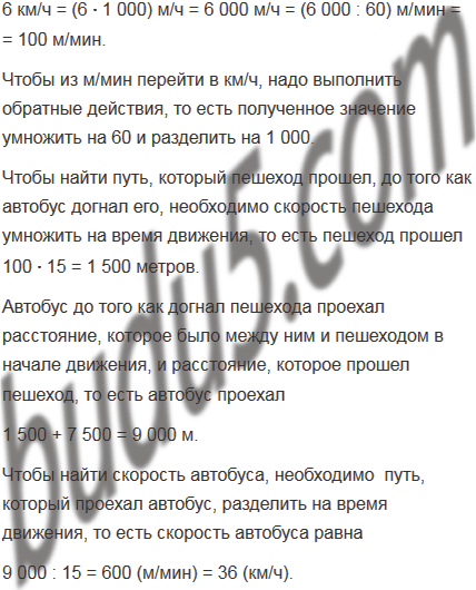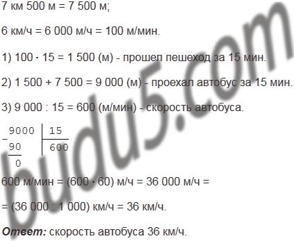 Из двух пунктов, расстояние между которыми 7 км 500 м, одновременно в одном направлении вышел пешеход со скоростью 6 км/ч и выехал автобус. Определите скорость автобуса, если он догнал пешехода через 15 мин.