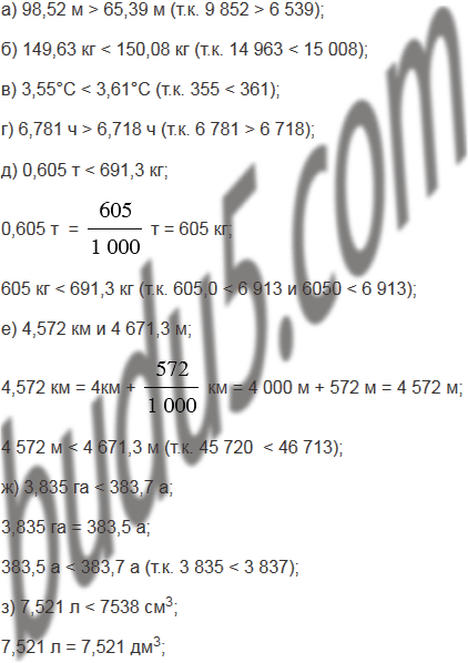 г) 6,781 ч и 6,718 ч; з) 7,521 л и 7538 см3.