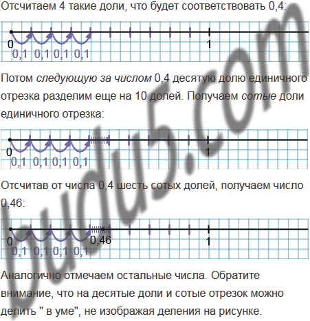 Отметьте на координатном луче точки с координатами: 0,46; 0,8; 1,25; 0,36; 0,77; 1,47. Единичный отрезок равен 1 дм.