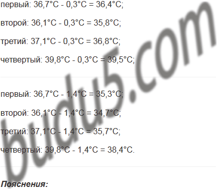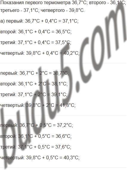 а) поднимется на 4 малых деления; на 2 больших деления; на 0,5°С; на 1,3°С;