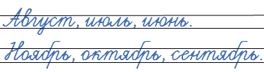 Запишите по алфавиту сначала названия летних месяцев, а потом - осенних месяцев.