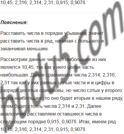 Расставьте в порядке убывания числа: 0,915; 2,314; 0,9078; 2,316; 2,31; 10,45.