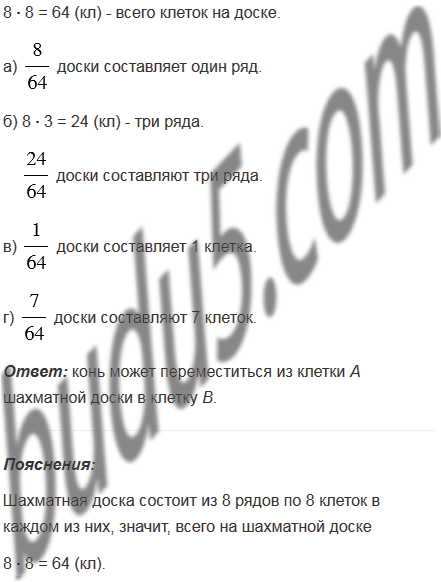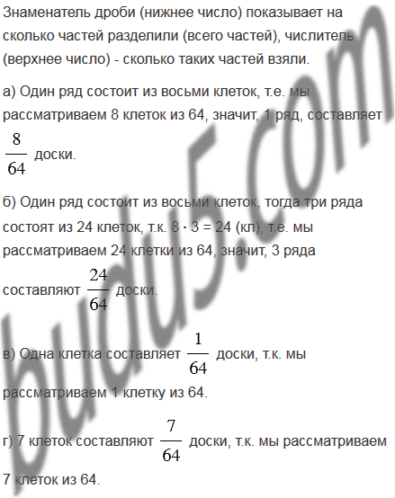 Шахматная доска состоит из 8 рядов по 8 клеток в каждом из них. Какую часть доски составляет: