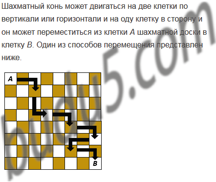 Шахматный конь может двигаться на две клетки по вертикали или горизонтали и на оду клетку в сторону. Подумайте, может ли конь переместиться из клетки А шахматной доски в клетку В.