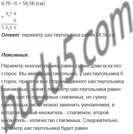 Все стороны шестиугольника имеют одинаковую длину 9,76 см. Найдите периметр шестиугольника.