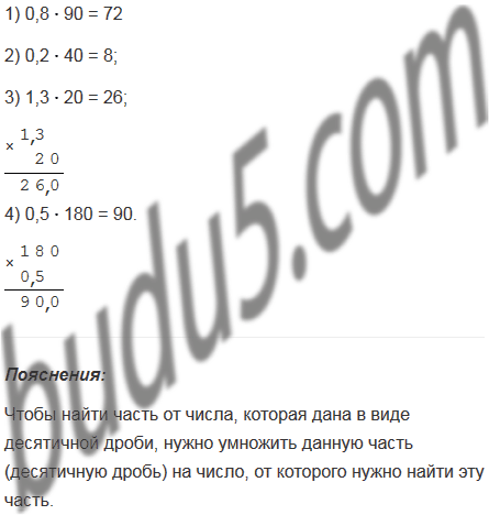 0,8 числа 90; 0,2 числа 40; 1,3 числа 20; 0,5 числа 180.