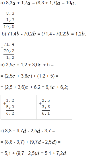г) 8,8 + 9,7 - 2,5 - 3,7.