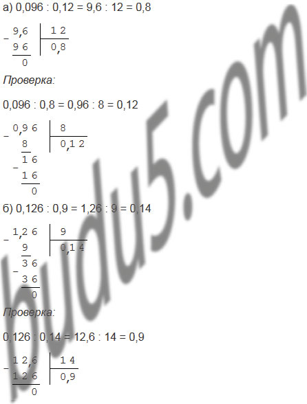 а) 0,096 : 0,12; б) 0,126 : 0,9; в) 42,105 : 3,5.