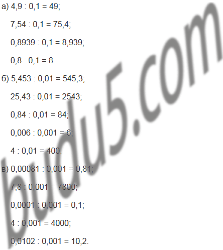 а) 4,9 : 0,1; 7,54 : 0,1; 0,8939 : 0,1; 0,8 : 0,1;
