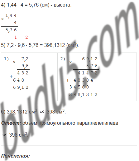высоты. Найдите объем этого параллелепипеда и округлите ответ до целых.