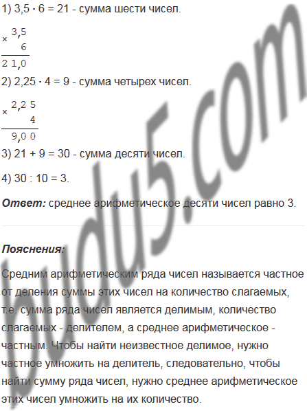 Среднее арифметическое шести чисел равно 3,5, а средне арифметическое четырех других чисел - 2,25. Найдите среднее арифметическое этих десяти чисел.