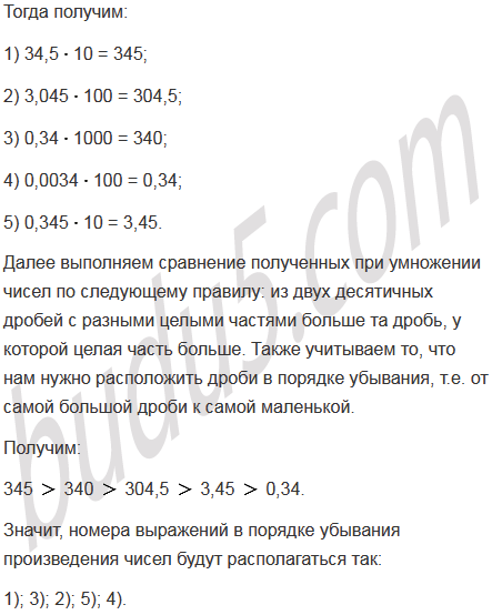 Расположите номера выражений в порядке убывания произведения чисел: