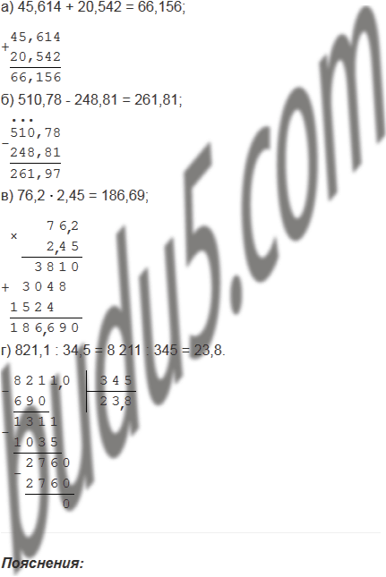 б) 510,78 - 248,81; г) 821,1 : 34,5.