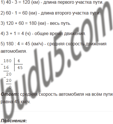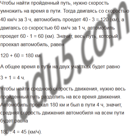 На первом участке пути автомобиль двигался 3 ч со скоростью 40 км/ч, а на втором - 1 ч со скоростью 60 км/ч. Какова средняя скорость автомобиля на всём пути?