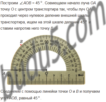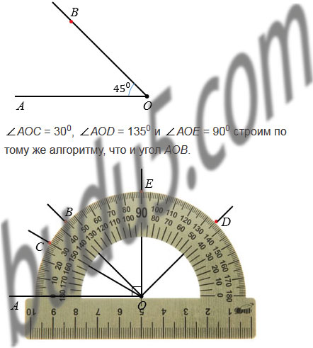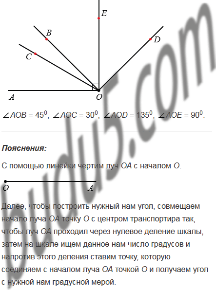 Начертите луч ОА. С помощью транспортира по одну сторону от луча ОА постройте: