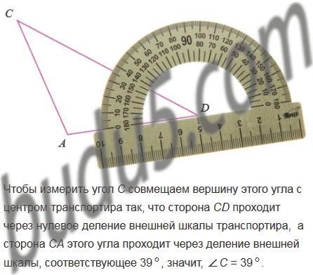 Измерьте каждый угол треугольника АСD, изображенного на рисунке 89. Найдите сумму градусных мер этих углов.