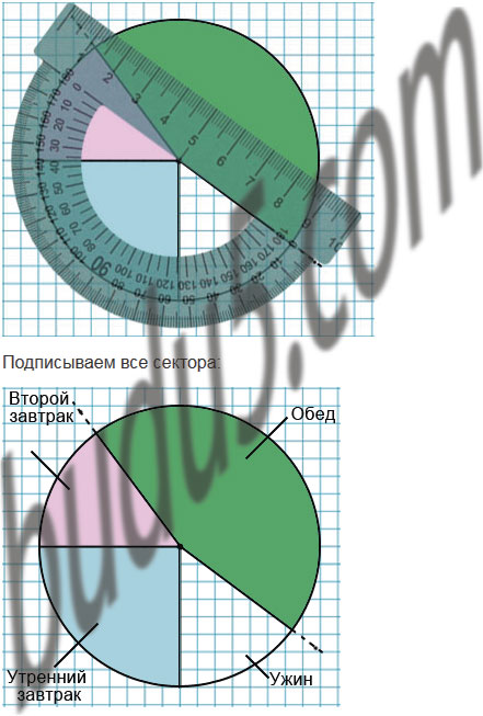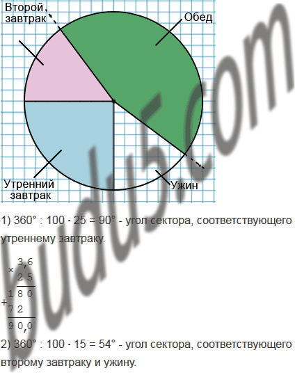 Врачи рекомендуют дневную норму питания распределить на 4 приёма: утренний завтрак - 25%, второй завтрак - 15%, обед - 45% и ужин - 15%. Постройте круговую диаграмму распределения дневной нормы питания.