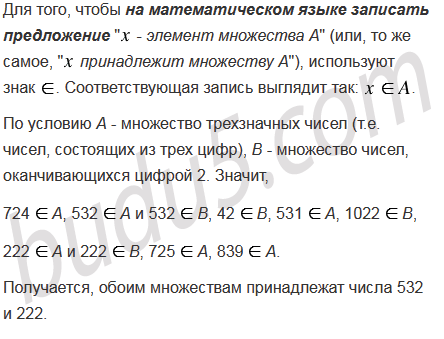 А - множество трехзначных чисел, В - множество чисел, оканчивающихся цифрой 2. Какому из этих множеств принадлежат числа 724, 532, 42, 531, 1022, 222, 725, 839? Какие числа принадлежат обоим множествам?