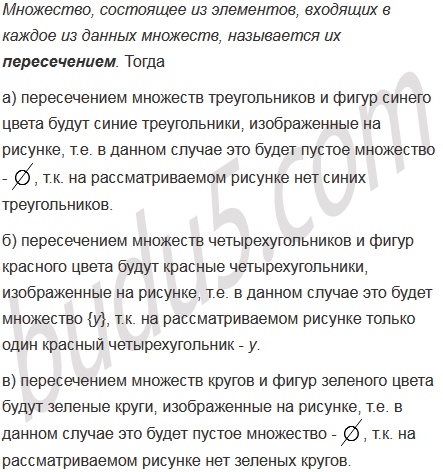 Найдите общую часть (пересечение) следующих множеств на рисунке 98: