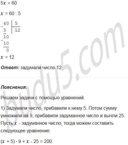 1) Задумали число, прибавили к нему 5. Потом сумму умножили на 9, прибавили задуманное число и вычли 25. Получилось 200. Какое число было задумано?