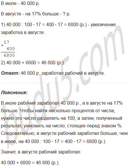В июле рабочий заработал 40 000 р., а в августе на 17% больше. Сколько рублей заработал рабочий в августе?