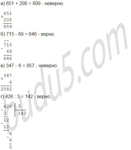 а) 651 + 208 = 809;