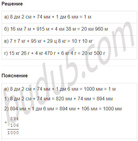 | а) 8 дм 2 см + 74 мм + 1 дм 6 мм |