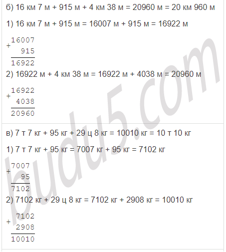 | б) 16 км 7 м + 915 м + 4 км 38 м |