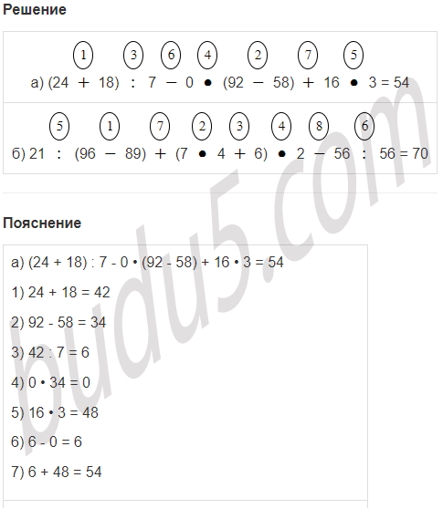 | а) (24 + 18) : 7 - 0 • (92 - 58) + 16 • 3 |