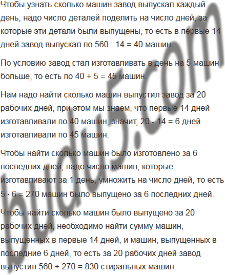 За первые 14 рабочих дней завод изготовил 560 стиральных машин, а затем стал изготавливать в день на 5 машин больше. Сколько машин выпустил завод за 20 рабочих дней?