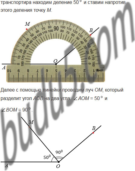 Постройте угол АОВ в 1400 и проведите луч ОМ так, чтобы он разделил угол АОВ на два угла, один из которых на 400 больше другого.